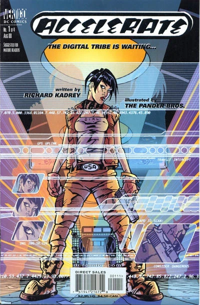 Accelerate is an American comic book series of the science fiction genre. It is a four-issue limited series published by DC Comics under their Vertigo imprint from August to November of 2000. The series was written by Richard Kadrey with artwork and embellishment by the Pander Bros. (Arnold and Jacob Pander). It was colored by Sherilyn van Valkenburgh and Allen Jamison (credited only as Jamison) and lettered by John Workman. The series was edited by Will Dennis and Shelly Bond. All four issues were collected in trade paperback format in 2007. The trade paperback was licensed through Image Comics.