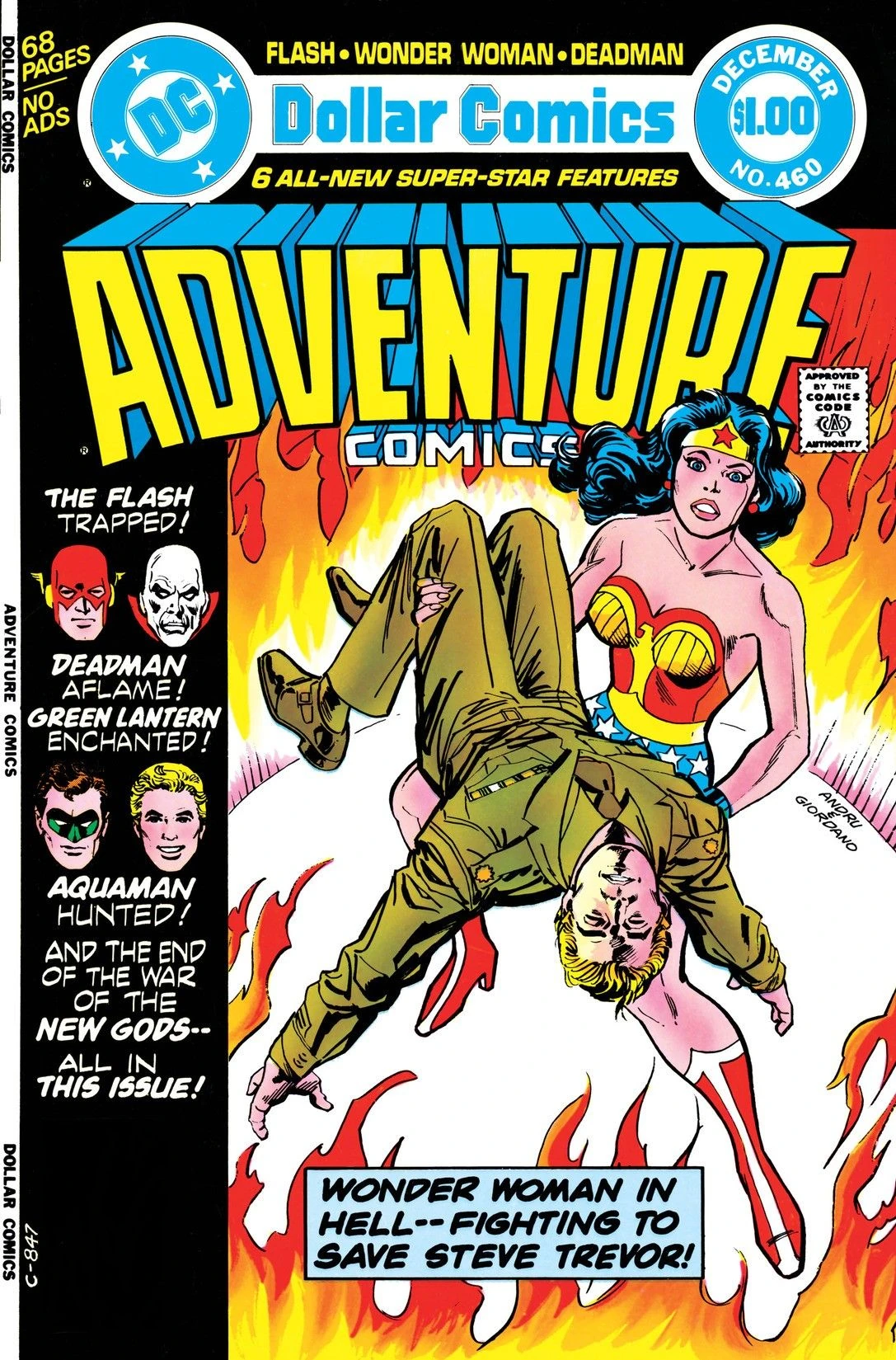 Adventure Comics is an American anthology comic book series of the superhero fantasy genre published by DC Comics. This issue contains multiple stories by creative teams, spotlighting the characters of the Flash, Deadman, the New Gods, Aquaman, Green Lantern, and Wonder Woman, spanning six stories in total. The cover art illustration was rendered by Ross Andru with inks by Dick Giordano, coloring by Tatjana Wood and lettering by Todd Klein. All stories were edited by Paul Levitz. This issue shipped with a November, 1978 cover date and carries a cover price of $1.00 per copy.