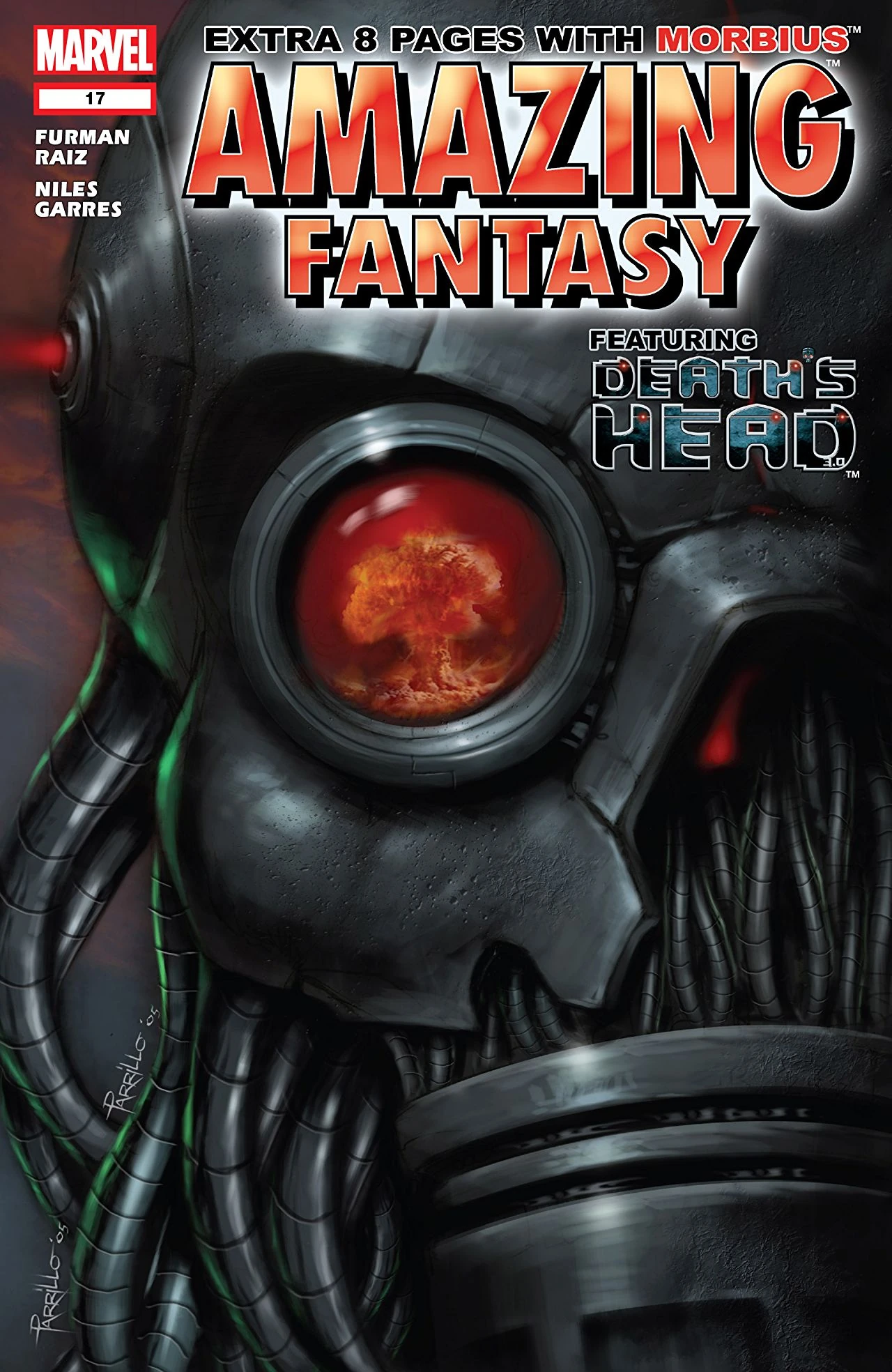 "Unnatural Selection (Part 2)" is the title to the first story featured in the seventeenth issue of Amazing Fantasy , Volume 2 , published by Marvel Comics . The story was written by Simon Furman with artwork by James Raiz and inks by the team of Robert Campanella , Scott Hanna , and Terry Pallott . It was colored by Val Staples and lettered by VC's Rus Wooton . The story spotlights the robotic character known as Death's Head 3.0 . The second story in this issue features Morbius the Living Vampire . It was written by Steve Niles with artwork by Rafa Gares . It was colored by Lee Loughridge and lettered by Rus Wooton. Both stories were edited by Mark Paniccia with Nathan Cosby as assistant editor. This issue shipped with a March, 2006 cover date and carries a cover price of $2.99 per copy (US).