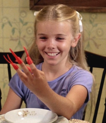 When Jesse came downstairs for breakfast, Angela was playing with plastic finger-claws that she got out of a box of Fu Man Chews breakfast cereal. This imagery reminded Jesse of his dream, and seeing his sister playing with the toy claws greatly disturbed him.
