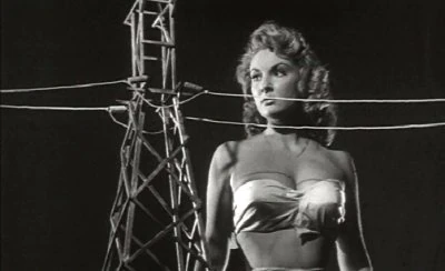 At the house, Nancy awakens and begins shouting for Harry. The doctors run upstairs and try to calm her down, but she in hysterics, demanding to see her husband. Harry is nowhere to be found. Doctor Cushing tells the attending nurse to call the sheriff. Nancy breaks loose from her chains and bursts through the roof of the house. She stalks off into the night, calling out for Harry. The fifty foot woman comes upon a power transformer and begins shaking it. All across the town, lights begin flickering as the power goes down.
