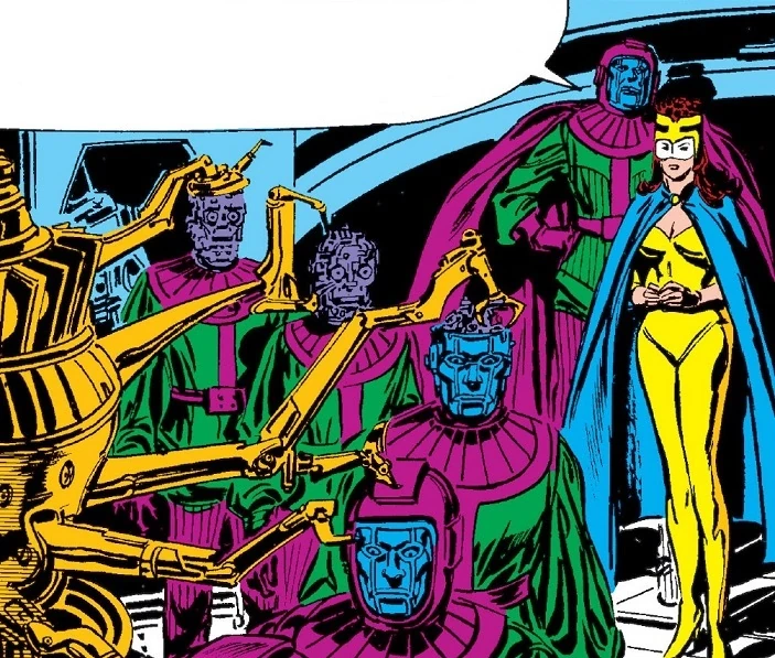 At some incalculable distance away, Kang and Ravonna take delight in confounding the Avengers. Kang's plan is to use them to defeat his final chronal duplicate. But he also wants to have fun with them first, driving them into a fury. Kang monitors his physically older variant as he confers with his lieutenants in the 41st century. Kang then takes Ravonna on a tour of his robotics laboratory, showing her the assembly line of Kang robots that he will distribute throughout the various timelines to take the place of their human variant counterparts.