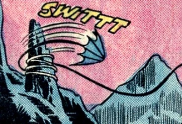 - Super Friends: The Bride of Darkseid (Part 2) - Batman & Robin use Batarang/Batlines to ensnare an Apokoliptian guard.