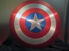 The disc shield is the second and most well-known shield wielded by Captain America. It is composed of an Adamantium/Vibranium alloy, which makes it virtually indestructible. Only True Adamantium withstands a chance of denting it, or even scratching it. This is the shield that Captain America used throughout the duration of World War II as well as many of his adventures in the modern era.