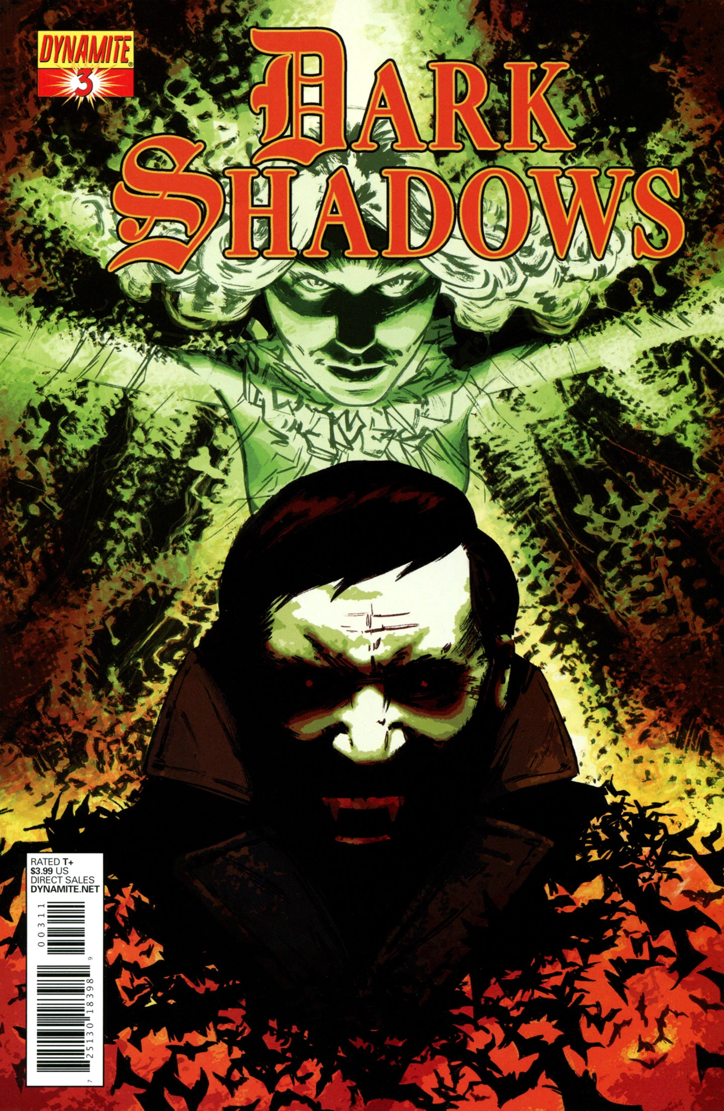 Dark Shadows is an American comic book series of the occult thriller and supernatural horror subgenres published by Dynamite Entertainment. It is the fifth comic book series to carry the name Dark Shadows and is the second ongoing series based on the original 1960s daytime Gothic soap opera Dark Shadows. The untitled story from issue #3 of Dark Shadows was written by Stuart Manning with interior artwork by Aaron Campbell who also provided the inks for this issue. The coloring was provided by Carlos Lopez with lettering by Troy Peteri of Comicraft. The cover art illustration was composed by Francesco Francavilla. The story was edited by Joseph Rybandt. This issue shipped with a January, 2012 cover date and carries a cover price of $3.99 per copy (US).
