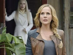 "The Awakening" is the twelfth episode season three of the science fiction television series Defiance and the thirty-eighth episode of the series overall. It was directed by Michael Nankin with a script written by Todd Slavkin and Darren Swimmer. The episode first aired on Syfy on Friday, August 21st, 2015 at 9:00 pm. In this episode, Kindzi begins unleashing her newly-awakened Omec upon her captured prisoners. All efforts to stop her seem to fail as Kindzi now harnesses the power of a mature Omec. As if the bitch ain't crazy enough, she even sets her sights on eating a baby. A goddamn baby for Christ's sake!