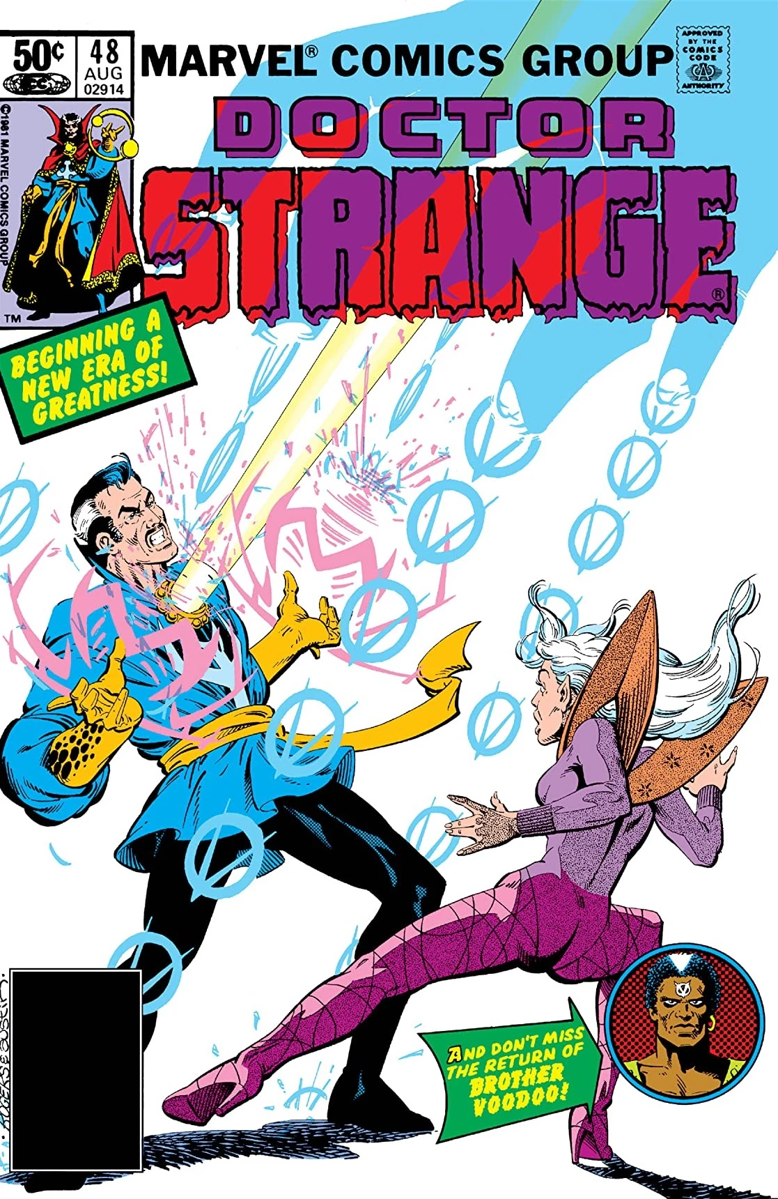 "The Power of Dr. Strange!" is the title to the forty-eighth issue of the second volume of the Marvel Comics superhero occult series Doctor Strange. Combining the issue totals of both volumes, this is the sixty-third issue of a Doctor Strange comic series. The story was written by Roger Stern with pencil breakdowns by Marshall Rogers. Finished art and inks were provided by Terry Austin. The cover art for this issue was composed by Marshall Rogers and Terry Austin as well. The issue was colored by Bob Sharen and lettered by Jim Novak. It was edited by Al Milgrom. This issue shipped with an August, 1981 cover date and carries a cover price of 50 cents per copy (US).