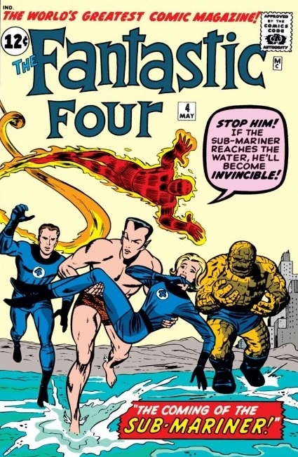 "The Coming of... Sub-Mariner!" is the title to the main story from the fourth issue of the American superhero comic book series The Fantastic Four by Marvel Comics. The story was written by Stan Lee with pencils by Jack Kirby and inks by Sol Brodsky. The issue was colored by Stan Goldberg with Artie Simek providing the lettering. The cover art illustration for this issue was composed by Jack Kirby, Sol Brodsky and Stan Goldberg. The story was edited by Stan Lee. This issue shipped with a May, 1962 cover date and carried a cover price of 12 cents per copy (US).