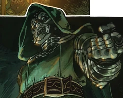 Zora Vukovic is a citizen of Doomstadt in the country of Latveria. Having evaded the servo-guards, she breaks the mandatory curfew and infiltrate Castle von Doom. She bypasses a horde of Doombots until she finally reaches Victor von Doom. She bows before Doom in supplication, pleading with the monarch to once again become a hero to the people. At first Doom is dismissive, but something about Zora reminds him of the man he once was. Donning the metallic mask that Zora regards as the "True face of Doom", he flies out among the masses.