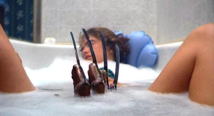 Freddy nearly got Nancy again, this time after she had fallen asleep while taking a bath. As she dozed, Freddy's glove came up out of the bath water and dragged her down into the tub where she floundered in a seemingly endless column of water. Thanks to her mother banging on the door, Nancy was able to wake up and save herself.