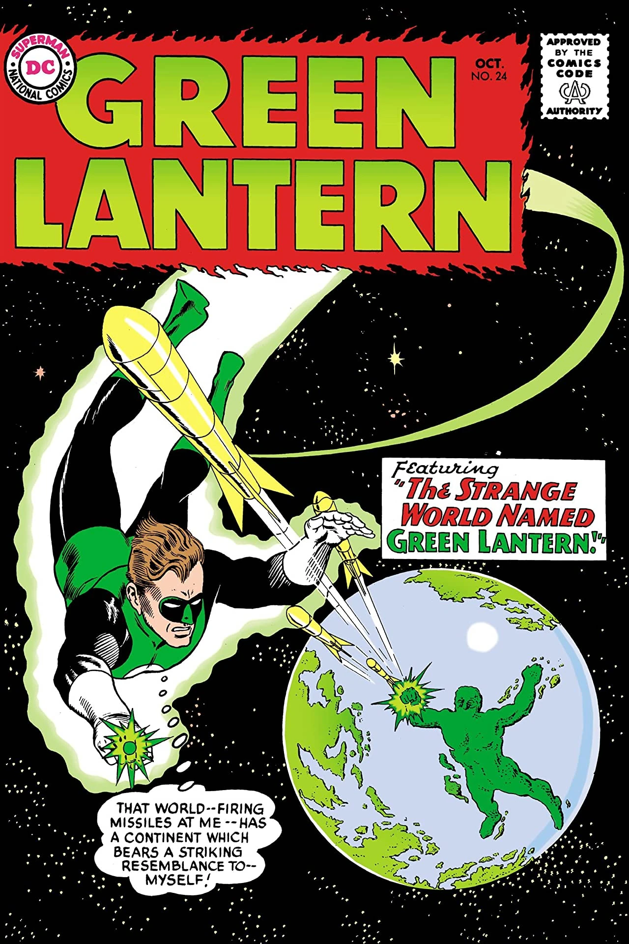 - ↑ 3.0 3.1 DC Indexes; Mike's Amazing World of DC Comics; Green Lantern #24 (October, 1963); "The Strange World Named Green Lantern!"