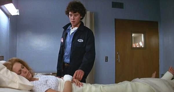At the hospital, ambulance driver Jimmy has taken an interest in Laurie Strode. He goes to her room to visit her and give her comfort. Nurse Virginia Alves comes into the room and tells Laurie that Doctor Mixter is going to wait until tomorrow before applying a cast to her injured ankle. Stating that Laurie needs some rest, she tells Jimmy to leave the room. Jimmy's partner Bud comes in and tells him that they need to leave. A call just came in.