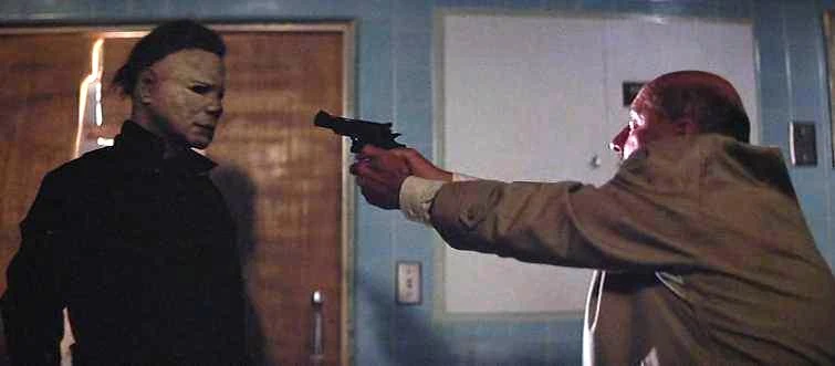 Believing she has killed Michael Myers, Laurie Strode instructs Tommy Doyle and Lindsey Wallace to seek shelter with a neighbor. After they leave, Michael rises and attacks Laurie. Doctor Sam Loomis bursts into the house and shoots Michael repeatedly. Myers falls backwards towards the outside and balcony and tumbles to the ground. Loomis goes to inspect the body, but Michael has disappeared. A neighbor comes out to see what all the noise is about. Loomis tells him to call the police.