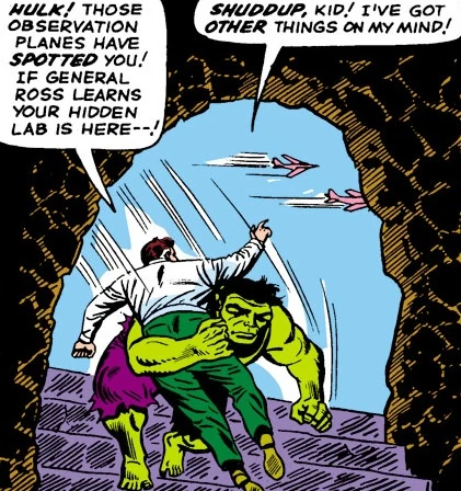 Bruce's trusted confidante, Rick Jones, was aware of the existence of the cave, and spent a great deal of time there, either helping Bruce out, or keeping vigil while the Hulk pounded at the wall inside the containment chamber.