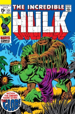 "Within the Swamp, There Stirs... a Glob!" is the story title to issue #121 of the The Incredible Hulk ongoing comic book series published by Marvel Comics. The story was written by Roy Thomas with artwork and inks by Herb Trimpe. Trimpe also rendered the cover art illustration to this issue. It was colored by Michele Robinson with lettering by Sam Rosen. It was edited by Stan Lee. This issue shipped with a November, 1969 cover date and carries a cover price of .15 cents per copy.