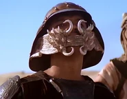 Fortunately, Lando was on the desert skiff used to ferry Luke Skywalker, a revived Han Solo and Chewbacca out to the Great Pit of Carkoon, where they were to be fed to the Sarlacc. On Luke's signal, Lando shed his Tamtel Skreej identity and began fighting up against Jabba's men. He grappled with a Kajain'sa'Nikto named Vedain.