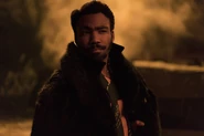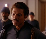 Once Lando and the others certified that Han had in fact been taken to the palace of Jabba the Hutt, they put together a comprehensive rescue operation strategy. Lando infiltrated Jabba's cartel and assumed the alias Tamtel Skreej. His cover identity was that he was a demolition racer, who piloted a Bantha-II cargo skiff in Jabba's illegal underground demolition circuit. On the day that the rescue operation was to commence, Lando made sure that he was front and center when Leia Organa, disguised as a bounty hunter named Boushh, brought a supposedly captured Chewbacca into Jabba's Palace under the pretense of collecting the bounty. Lando and Leia took note of one another and exchanged glances, signalling each other that the operation was proceding as planned.