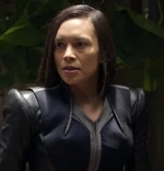 Auran traced the signal to Waikiki Beach in Honolulu, Hawaii on Earth and transported herself there to capture her. The two fought one another, and Medusa defeated Auran in battle, delivering a near fatal stab wound to the abdomen. Auran was a healer however, and recovered from the injury moments later.