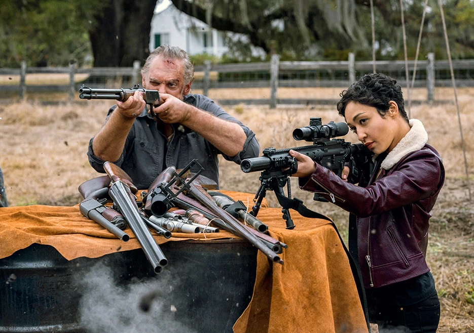 TV shows such as The Walking Dead and Fear the Walking Dead also showcase characters wielding machine guns. The protagonists of the show normally use rifles, shotguns and fully automatic handguns, but every now and then they come upon a cache of heavier firepower. During season three of The Walking Dead, the main characters were able to pull together some high-powered weaponry from the West Georgia Correctional Facility. This was convenient as their adversaries over at Woodbury, led by the psychopathic Governor, had several machine guns at their disposal. By season six of the show, a new group of enemies called the Saviors caused a bunch of trouble and had ready access to all manner of weapons.