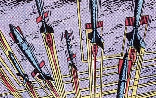 - Uncanny X-Men 94 - Count Nefaria launches 3 missiles at X-Men Stratojet from Valhalla Base.