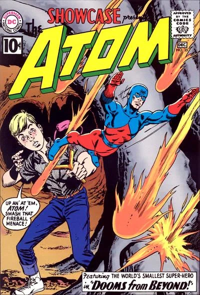"The Dooms from Beyond!" is the story title to issue #35 of Showcase, published by DC Comics. The featured character from this story is Ray Palmer, aka, The Atom. The story was written by Gardner Fox with artwork by Gil Kane and Murphy Anderson, who also provided the cover art illustration for this issue. No colorist or letterer is credited in this issue. The story was edited by Julius Schwartz. This issue shipped with a November-December, 1961 cover date and carries a cover price of 10 cents per copy (US).