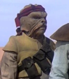 Pote Snitkin worked for Jabba the Hutt and was the helmsman of the second skiff during the Skirmish at Carkoon. Prisoner Luke Skywalker rebelled against his captors and began fighting Jabba's henchmen with his lighstaber. During the chaos, Pote's rival, Hermi Odle took advantage of the chaos and shot his enemy with a stun weapon, knocking him off the skiff and into the Sarlacc. |