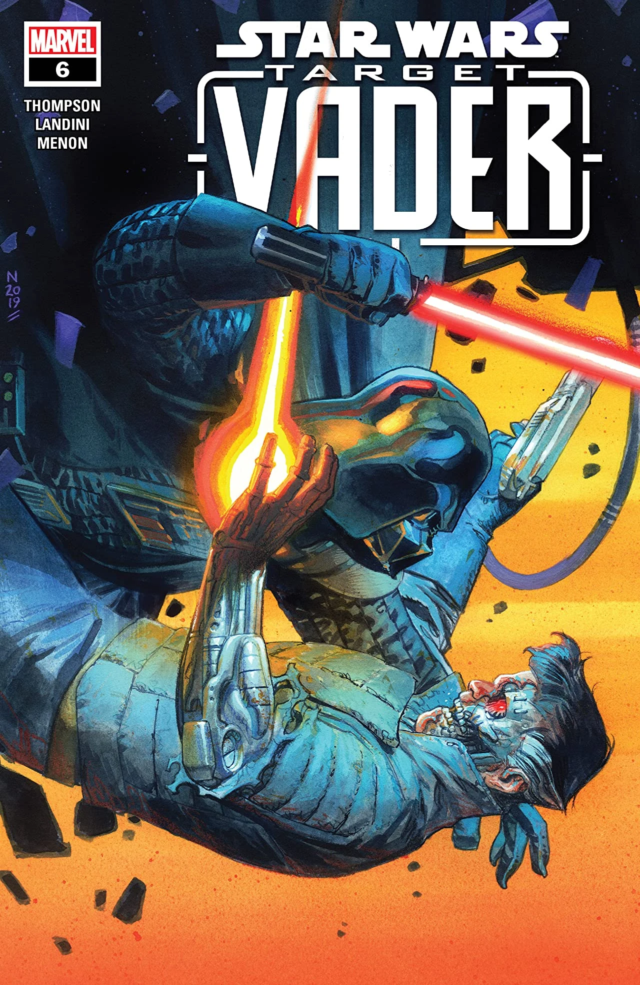 "Free" is the sixth and final issue of the Star Wars: Target Vader comic book limited series published by Marvel Comics. The story was written by Robbie Thompson with artwork & inks by Stefano Landini, Roberto Di Salvo, and Georges Duarte. Coloring was by Rachelle Rosenberg & Neeraj Menon, and it was lettered by Joe Caramagna. The story was edited by Mark Paniccia with Tom Groneman as assistant editor. This issue shipped with a February, 2020 cover date and carries a cover price of $3.99 per copy (US).
