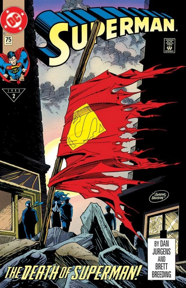 - The tagline for this issue is "Here lies Earth's greatest hero - The Death of Superman!"