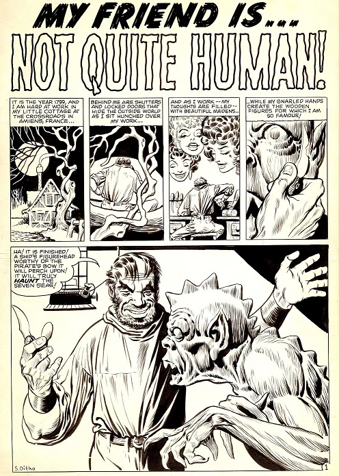 "My Friend is... Not Quite Human!" is not so much a reprint as it is a re-working of "The Wooden Woman", which is the fifth story featured in Menace #8 in October, 1953.