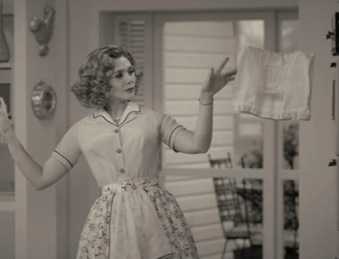 - WandaVision: Filmed Before a Live Studio Audience - Wanda moves plates and other various items around the house.