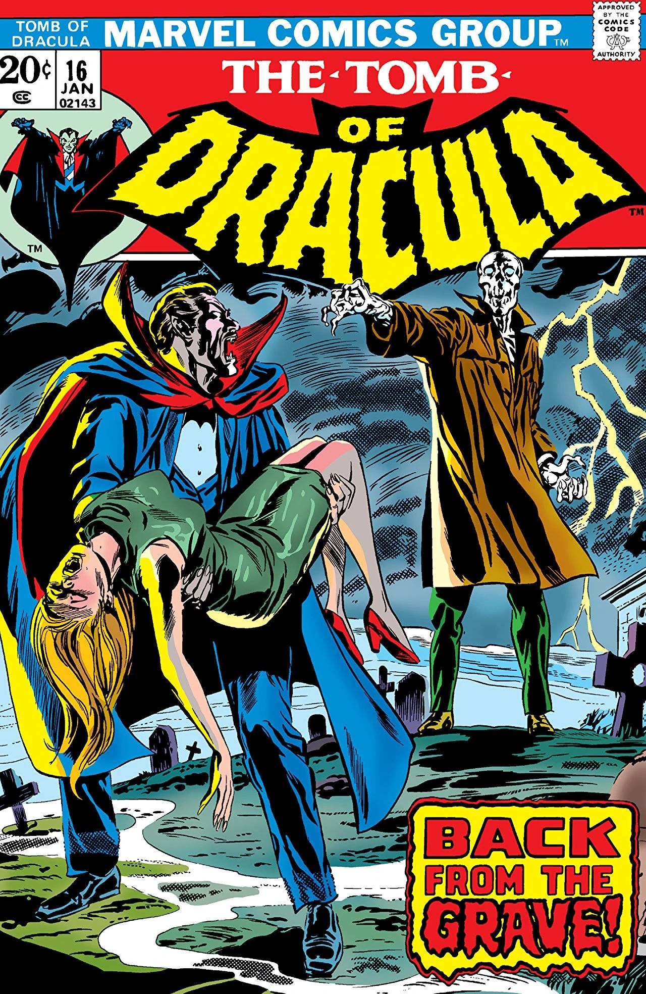 "Return from the Grave" is the title to the sixteenth issue of the Tomb of Dracula ongoing comic book series published by Marvel Comics. The story was written by Marv Wolfman with artwork by Gene Colan and inks by Tom Palmer. It was colored by Tom Palmer as well and lettered by Artie Simek. The story was edited by Roy Thomas. This issue shipped with a January, 1974 cover date and carries a cover price of .25 cents per copy.