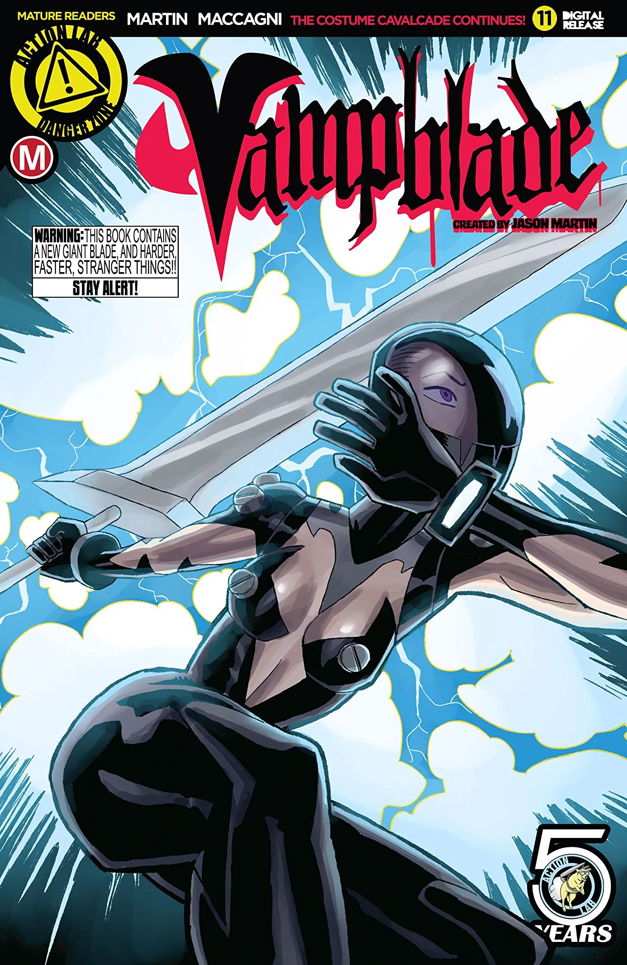 "Vampblade" is the untitled eleventh issue to the first Vampblade ongoing comic book series published by Action Lab Comics under their Danger Zone imprint. The story was written by Jason Martin with artwork and inks by Marco Maccagni. It was colored by Daniel Arruda Massa and lettered by Adam Wollet. The story was edited by Nicole D'Andria. This issue shipped with a December, 2016 cover date and carries a cover price of $3.99 per copy (US).
